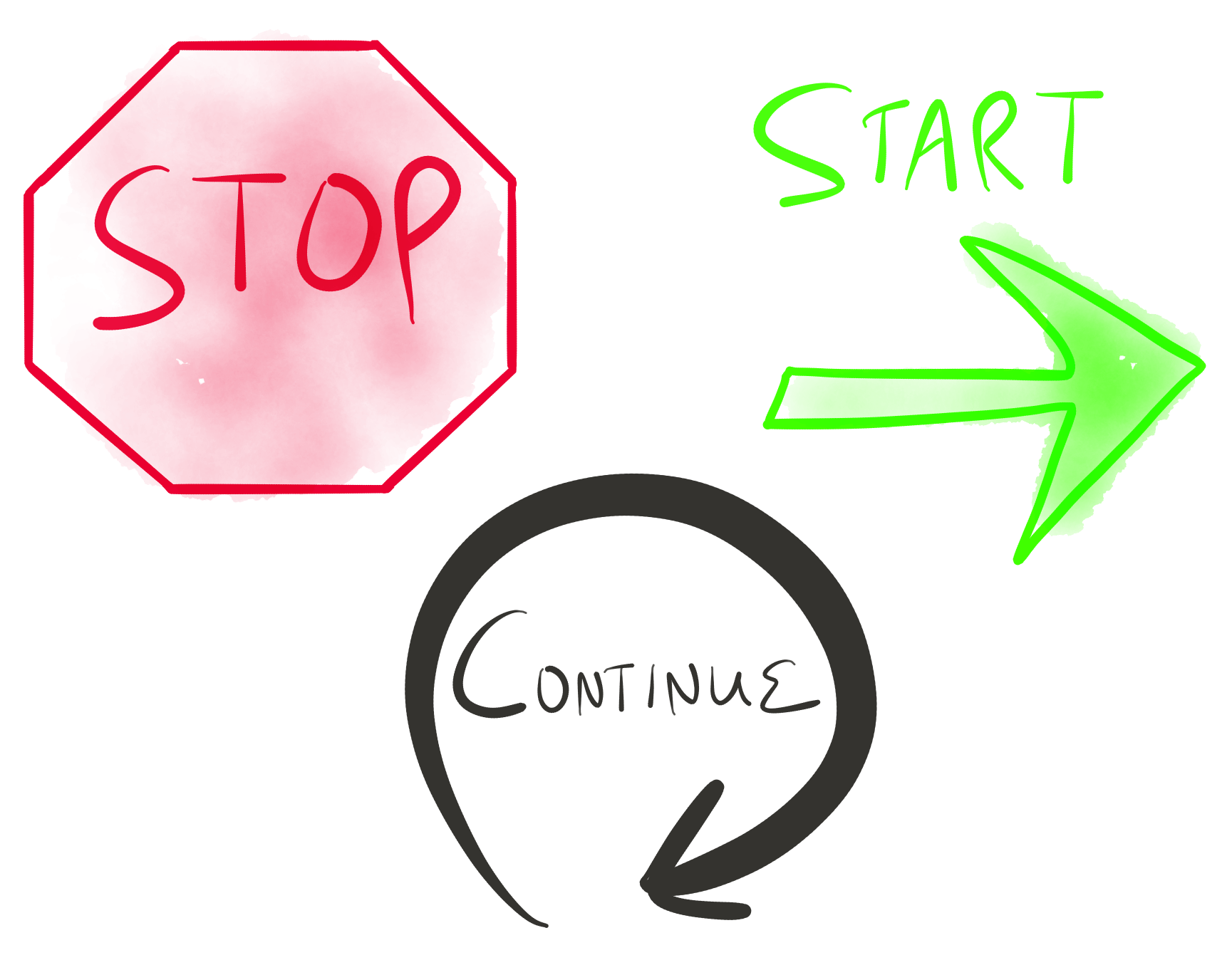 The usual retrospective framework of “start, stop, continue” can apply here.