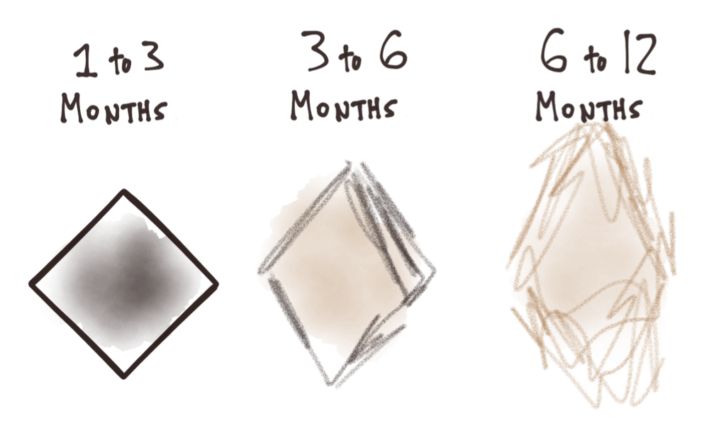 The takeaway is to spend less time making overly precise estimates for far-in-the-future concepts. As you plan further into the future, use time ranges instead of precise estimates or a range of possible solutions which reflect the fuzzier confidence that concepts will still be important 9 to 12 months from now.