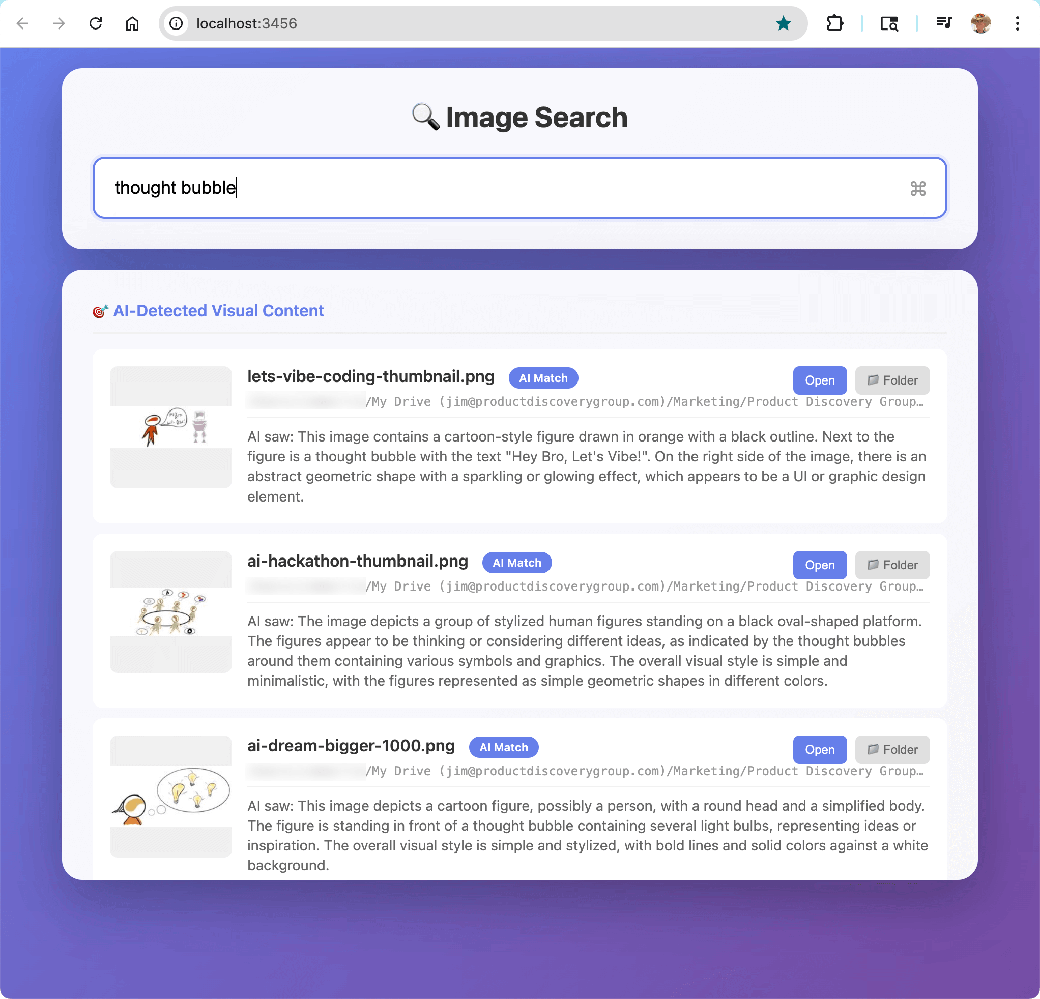 So I vibe coded an image search. In less than 2 hours of chatting/prompting (over a couple days), I created a fully functional image search.